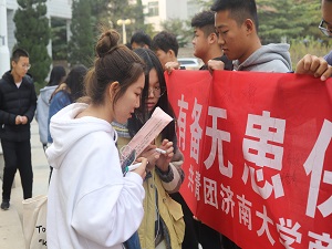 增强消防意识,共创平安校园。11月8日,白菜网所有网站大全青年志愿者协会于经管楼前举办“消防月启动仪式”活动,青年志愿者协会全体成员参与此次活动。