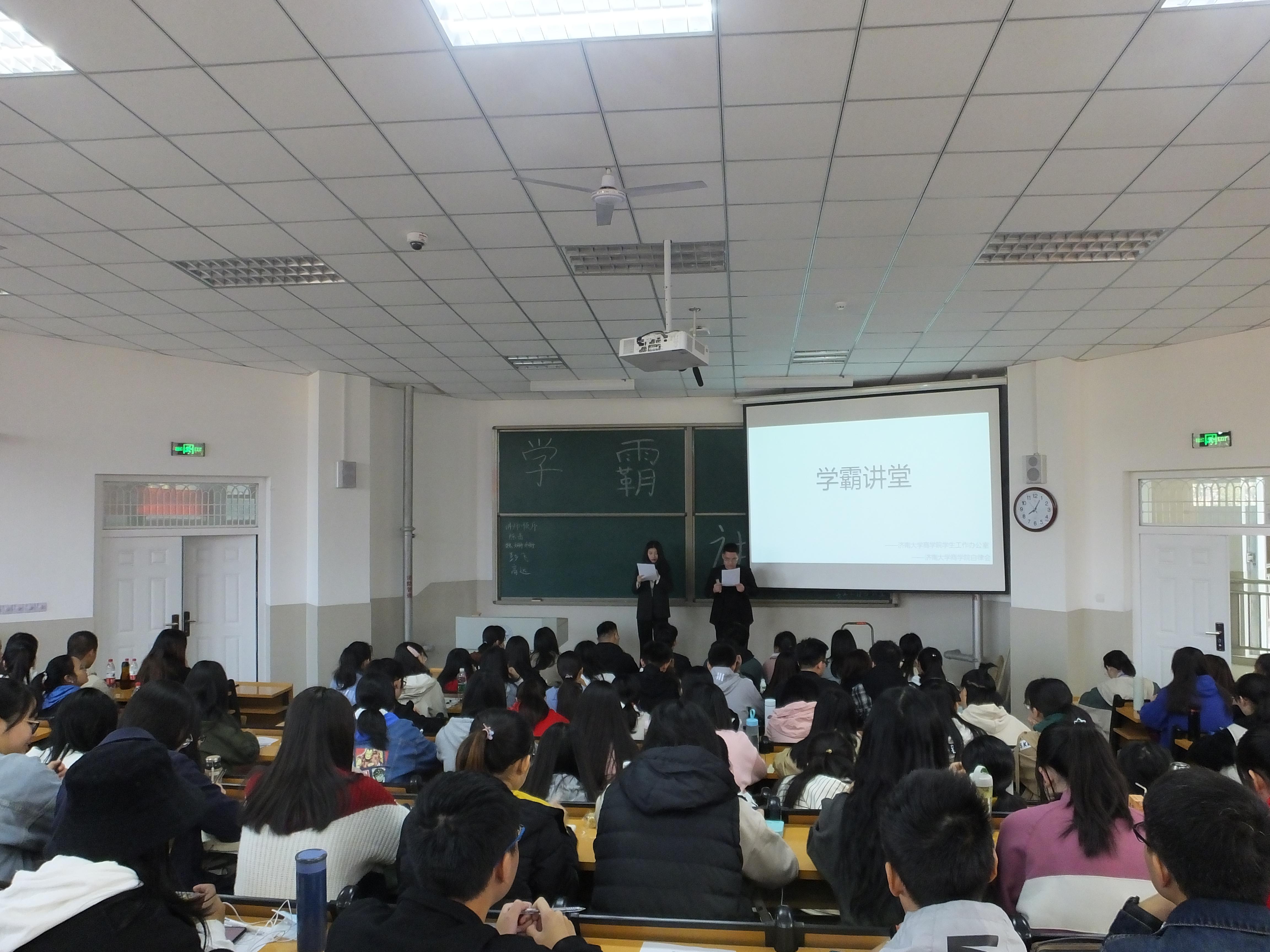 自律会活动负责人通过各年级推荐及讲师考核,最终为第一期学霸讲堂活动“考研篇”确定了四名讲师,讲师身份均为白菜网所有网站大全2016级保研的学生,在活动开始前,活动负责人与各讲师积极沟通,多次审核讲义稿件,保证活动的高质量与顺利进行。活动伊始,随着主持人宣布学霸讲堂正式开始,四位“考研篇”讲师--高达、魏姗姗、彭飞、陈岳依次登台,为同学们传播学习经验。在讲堂过程中,讲师们积极与在座学生进行课堂互动,并充分结合自身四年的白菜网所有网站大全学习生活与同学们分享自己的得失经验。同学们认真聆听仔细记录,不时为学长学姐们的精彩讲课鼓掌喝彩。